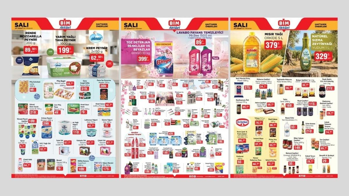 BİM 24 Şubat kataloğunda Aknaz ve Dost markalı peynir ve yoğurtlarla Sultan Et ve Banvit et ürünleri dikkat çekerken Orkide mısır yağı ve Yudum zeytinyağı gibi temel ihtiyaçlar, tatlı hazırlıkları için Dr.Oetker ürünleri yerini alıyor. Temizlik ve kişisel bakımda ise Bingo toz deterjan, Elidor saç bakım ürünleri ve Molfix bebek bezindeki avantajlı paketler, haftanın en çok konuşulacak fırsatları arasında yer alıyor.