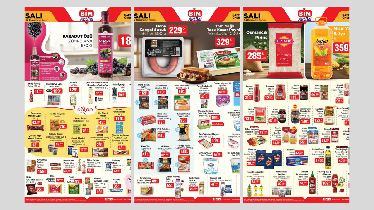 Bu hafta BİM'de kahvaltılıklardan içeceklere kadar pek çok üründe özel fırsatlar sunuluyor. Enerji içeceklerinden kahve çeşitlerine, peynir ve süt ürünlerinden sağlıklı atıştırmalıklara kadar her damak zevkine uygun seçeneklerin yer aldığı BİM’de temel gıda ürünleri, bakliyat ve yağ çeşitleri de uygun fiyatlarla satışta. Bu hafta markete gelen ürünler sayesinde hem günlük ihtiyaçlarınızı karşılayabilir hem de aileniz ve sevdikleriniz için ekonomik alışverişin keyfini çıkarabilirsiniz. İşte detaylar!