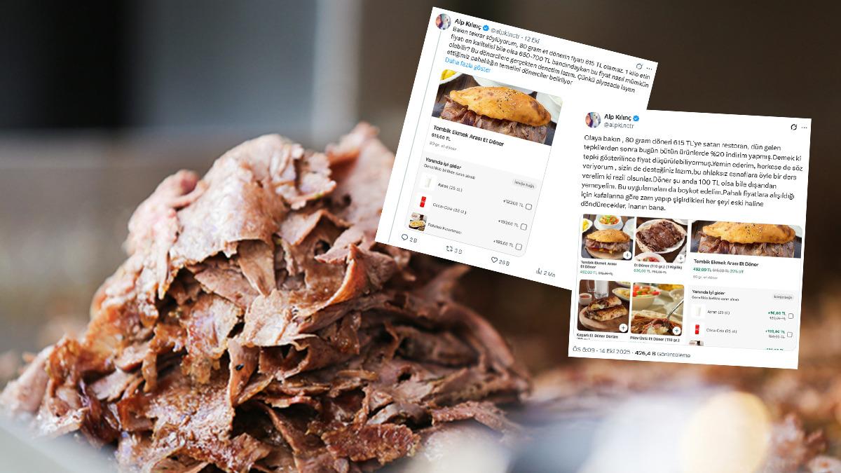 Kullanıcı paylaşımına, "Bakın tekrar söylüyorum, 80 gram et dönerin fiyatı 615 TL olamaz. 1 kilo etin fiyatı en kalitelisi bile olsa 650-700 TL bandındayken bu fiyat nasıl mümkün olabilir? Bu haksız ve haram bir kazançtır. Hiçbir resmiyeti olmadan 'serbest piyasa' bahanesiyle kafalarına göre fiyat belirliyorlar ve herkesi söğüşlüyorlar" yorumunda bulundu.
