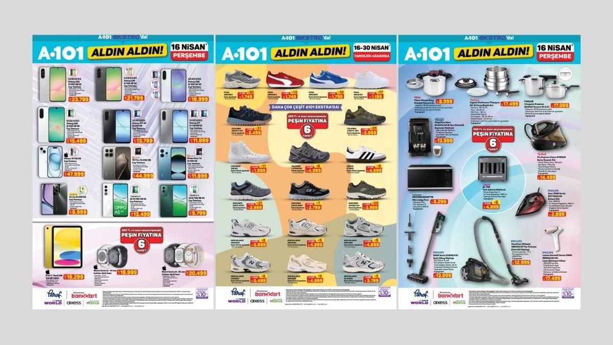 A101’in 16 Nisan kataloğunda Puma, Columbia, New Balance ve Skechers markalarının spor ayakkabı modelleri uygun fiyatlarla sunulurken iPhone 15, Samsung Galaxy A55 ve iPad gibi teknoloji cihazlar dijital ihtiyaçlarınızı karşılıyor. Mutfakta profesyonellik arayanlara Tefal ve Fissler setleri ile Grundig tam otomatik espresso makineleri eşlik ederken LS2 marka profesyonel motosiklet ekipmanları da bu haftanın dikkat çeken diğer önemli fırsatları arasında yer alıyor.