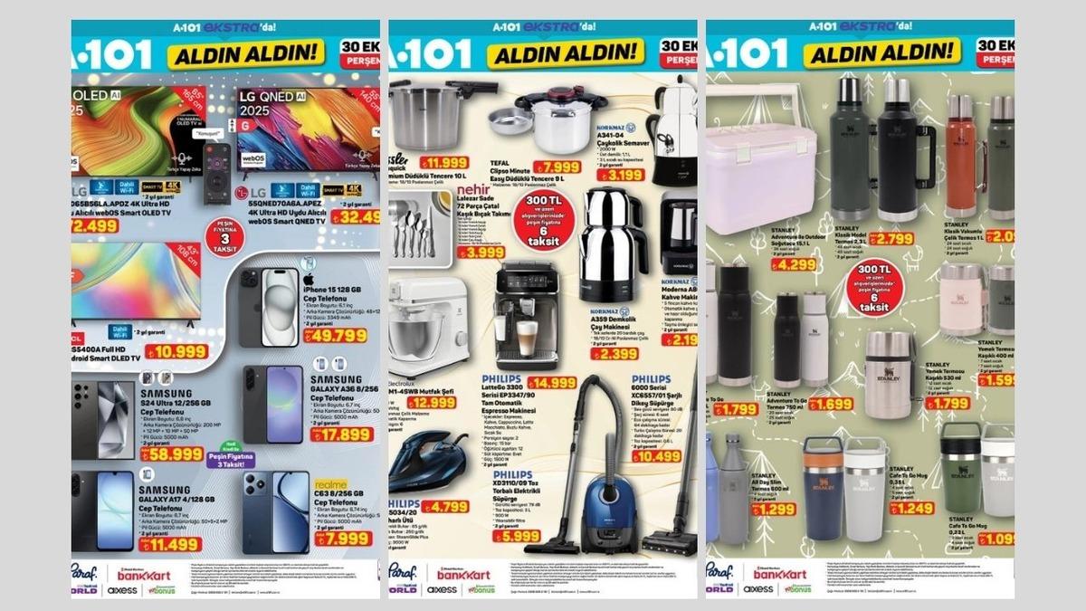 Bu hafta A101'de mobilyadan telefona, parfümden saate herkesin ihtiyaç duyduğu ürünleri getiriyor. Adidas, Salomon, Columbia, Apple, Samsung ve daha birçok sevilen markada cazip fırsatlar dikkat çekiyor. Mutfakta pratiklik sağlayan blender seti ve kahve öğütücülerin satışta olduğu bu perşembe kataloğunda Apple ve Samsung telefonlar, ev konforunu artıracak dolaplar, makyaj masaları ile masa takmları da yerini alıyor. A101 Aldın Aldın Kataloğu'nu merak ediyorsanız işte dolu dolu ürünler içeriğimizde...