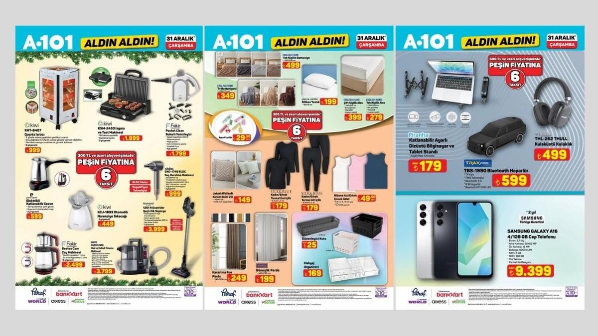 31 Aralık A101 aktüel ürünler yayında! A101 online üzerinden de incelenebilir olan A101 katalog içinde birbirinden dikkat çeken fırsatlar bulunuyor. A101 aktüel ürünler listesindeki teknolojiden ev elektroniğine, oyuncaklardan mobilyaya kadar pek çok ürün A101 market raflarında yerini alacakken yeni yayınlanan A101 katalog bu hafta sayfasındaki avantajlı fiyatlara göz atmadan alışverişlerinize başlamayın!
