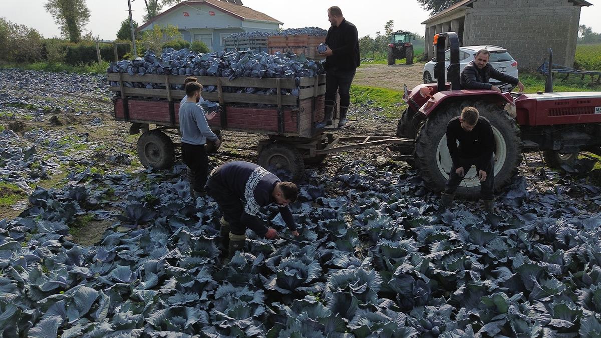 Kırmızı lahanada hasadın başladığını belirten Tosuner, "Dekar başına 5 ila 6 ton verim alınıyor. Ürünün bakımına göre bu değişiyor ama 5 tonun altına pek düşmüyor." dedi.