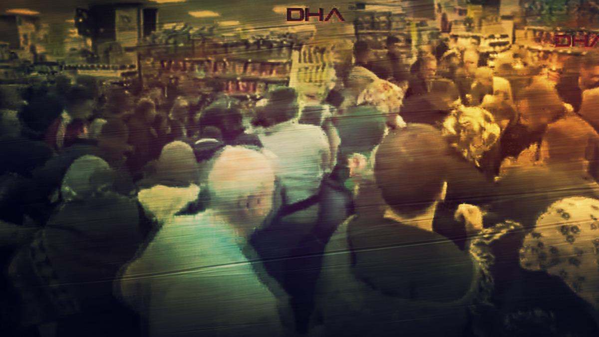 Çocukların da olduğu markette zaman zaman ezilme tehlikesiyle karşılaştılar.