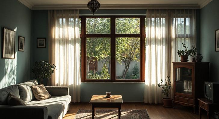 Gürültü ve dışarıdan evin içinin görünmesi.