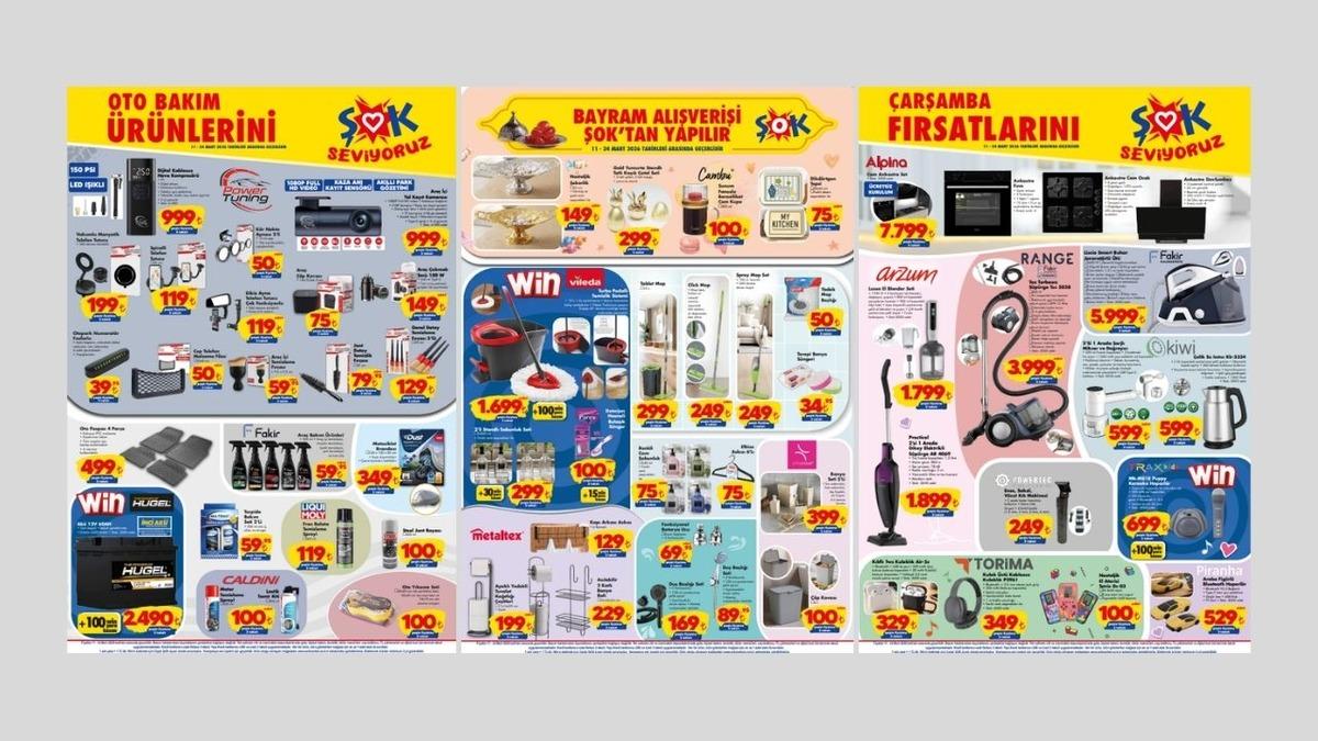 ŞOK marketin 11 - 24 Mart 2026 tarihleri arasında geçerli olan yeni kataloğunda süt ürünleri, sucuk ve zeytinyağı gibi temel gıdalar uygun fiyatlarla raflardaki yerini alırken mop setleri ve deterjanlar da dikkat çekiyor. Ankastre set, süpürge ve buharlı ütü gibi büyük kolaylık sağlayan cihazların yanı sıra araç sahiplerini sevindirecek yol kayıt kamerası, hava kompresörü ve çeşitli oto bakım ürünleri de bu haftanın fırsatları arasında yer alıyor.