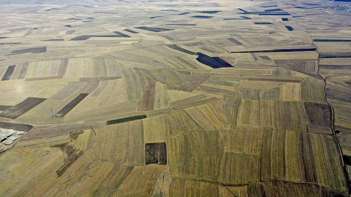 Dronla görüntülenen ve "halı desenine" benzeyen ovada, çiftçiler son ürünlerini hasat ederek bir sonraki sezona hazırlanıyor.