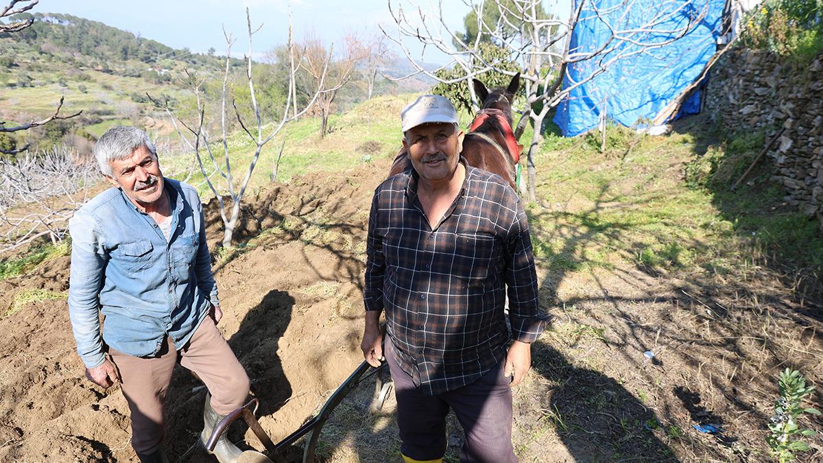 Katırla toprakları işleyen 66 yaşındaki Musa Küçük, köyün en gencinin 50 yaşlarında olduğunu ifade ederek, "İncirlerin, asmaların diplerini işliyoruz. Onları sürüyoruz. Bizim buralarda traktör zaten işleyemiyor. Çapa makinesi işliyor ama o da bunun yaptığı işi yapamıyor. Mecburen yine hayvanla çalışıyoruz. Bahar mevsimi geldiği zaman mart ayında başlarız bu toprakları işlemeye, hazirana kadar devam eder. Köylerimizde maalesef genç kalmadı. Köyün en gençleri biziz. Köyün en gençleri 50 yaş üzeri. Haliyle bizim başımıza kalıyor işler. Gençleri buraya çekmemiz için köylere destek verilmesi lazım. Böyle giderse bizden sonra bu toprakları işleyecek insan kalmayacak. Çoluk çocuk yetişmeyecek. Benim 3 evladım var, üçü de dışarıda" dedi.