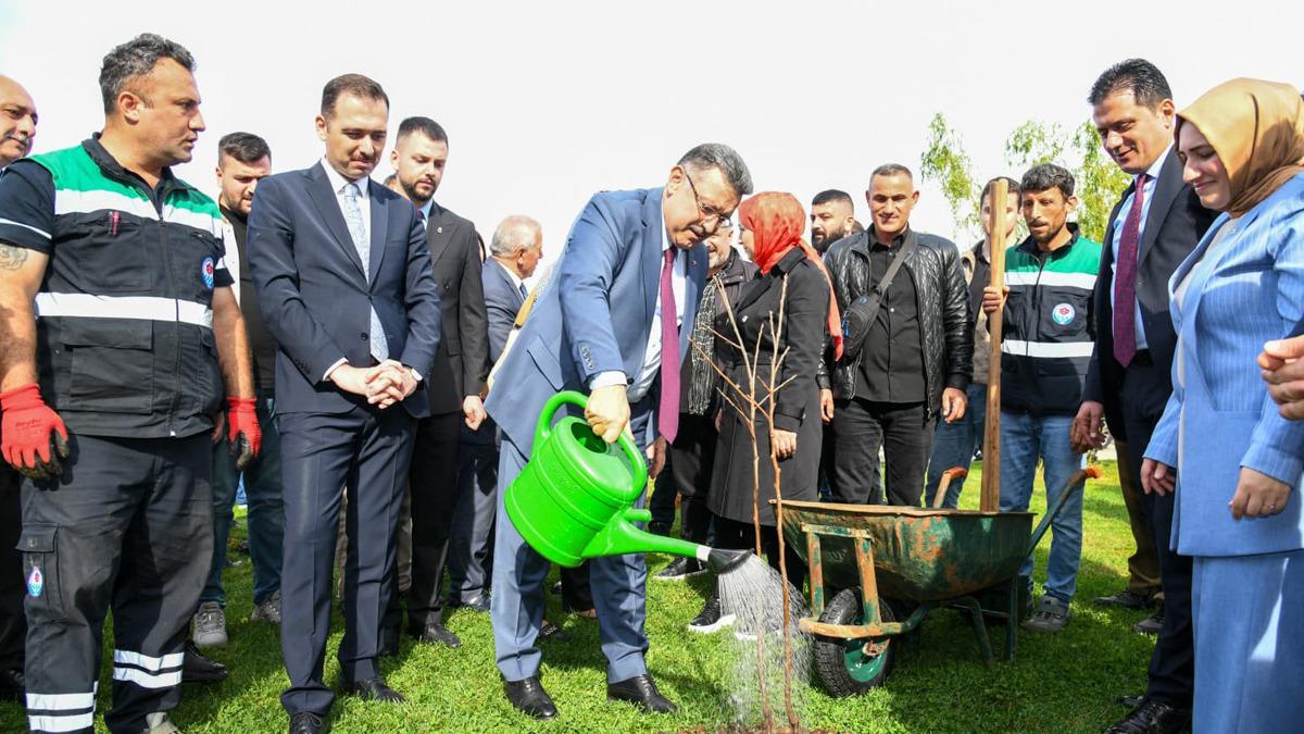 Konuşmaların ardından üreticilere meyve fidanları dağıtıldı, şantiye alanına fidan dikildi.
